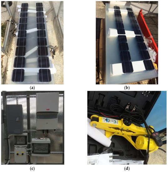 - Yano, A.; Kadowaki, M.; Furue, A.; Tamaki, N.; Tanaka, T.; Hiraki, E.; Kato, Y.; Ishizu, F.; Noda, S. Shading and electrical features of a photovoltaic array mounted inside the roof of an east-west oriented greenhouse. Biosyst. Eng. 2010, 106, 367–377. [Google Scholar] [CrossRef]