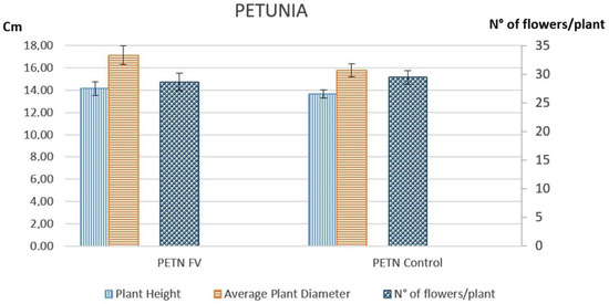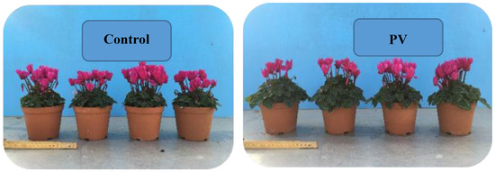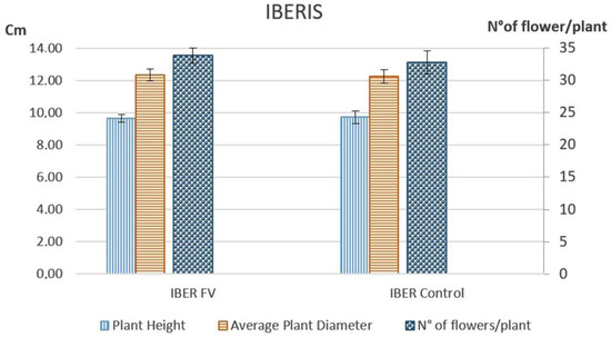 - number of flowers/plant. In the case of iberis, the number of flower buds was counted since no blooming was scored for both treatments (PV and control).