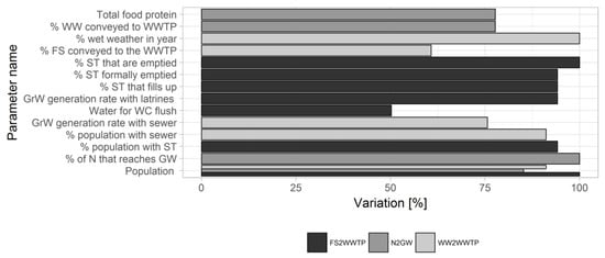 | % improved latrines formally emptied | [-] | Truncated normal | 14 | 0.7 | [47,48] |