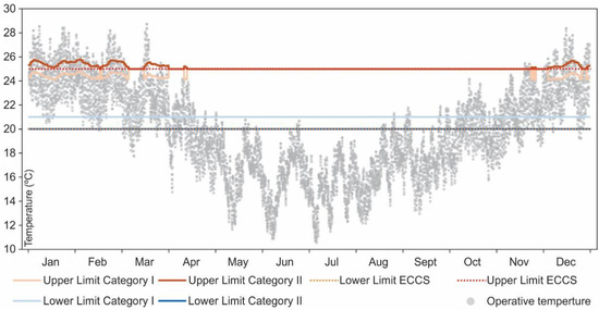 - Comité Européen de Normalisation (CEN). EN 15251:2007 Indoor Environmental Input Parameters for Design and Assessment of Energy Performance of Buildings Addressing Indoor Quality, Thermal Environment, Lighting and Acoustics; European Committee for Standardization: Brussels, Belgium, 2007. [Google Scholar]