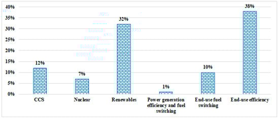 Carbon Capture and Storage (CCS) is a complex technology and consists of sets of technological components associated with capturing, transporting and storing CO2 deep underground; it is the only technology that reduces carbon emissions from coal-fired power plants [4]. As shown in Figure 1, the contributions of CCS technology to reduce CO2 would reach about 12% of the cumulative emissions reductions by 2050 and according to the estimation of International Energy Agency (IEA), 94 Gt CO2 will be captured and stored between 2013 and 2050 under the 2DS (2 °C scenario) [5], around 56% or 52 Gt of total carbon dioxide captured is from power sector, 31% or 29 Gt is captured from industrial processes and 14% or 13 Gt is captured from fuel transformation [6]. Therefore, CCS technology is critical in order to meet the goals of the Paris Agreement on the climate [7], and, because the future of CCS technology is promising and predictable, there is a growing international interest in promoting CCS technology, more and more intergovernmental organizations focused on the demonstration and development of CCS technology, such as the United Nations Framework Convention On Climate Change (UNFCCC), the Carbon Sequestration Leadership Forum (CSLF), the G8, the International Energy Agency (IEA) and the Asia Pacific Partnership for Clean Development and Climate (APP) and so on [4].
