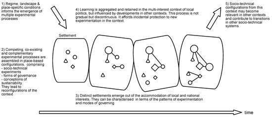 - A continual reproduction of urban experimental processes within the milieu and the energy scene, which acted as sites of both contestation and collaboration, not simply increasing the performance and suitability of technologies to a particular context but instead ‘culturing’ plural alternatives [111] and fostering the necessary conditions for their flourishing.