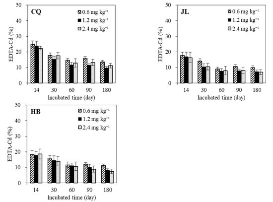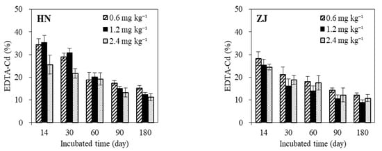 3.1. Change of EDTA-Extractable Cd in Different Soils with Time