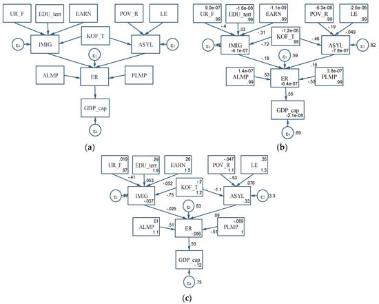 (a) Results of the models developed for assessing the economic consequences of immigration upon host economies, 2000–2015 sample—General model; (b) Results of the models developed for assessing the economic consequences of immigration upon host economies, 2000–2019 sample—General model.
