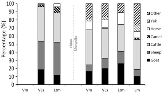 - Saizen, I. Change in livestock species and their spatial distribution. In The Mongolian Ecosystem Network: Environmental Issues under Climate and Social Changes; Yamamura, N., Fujita, N., Maekawa, A., Eds.; Springer: Tokyo, Japan; New York, NY, USA, 2013. [Google Scholar]