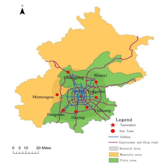 - Yu, H. Reseach on Spatial Structure of Employment and Spatial Structure Adjustment in Beijing and the Affect to Residential and Employment; Capital Normal University: Beijing, China, 2012. (In Chinese) [Google Scholar]