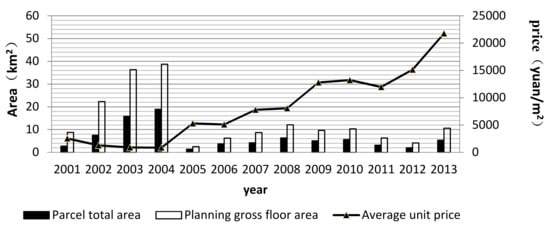 - Li, L.-H. Land price changes in the evolving land market in Beijing. Prop. Manag. 2009, 27, 91–108. [Google Scholar] [CrossRef]