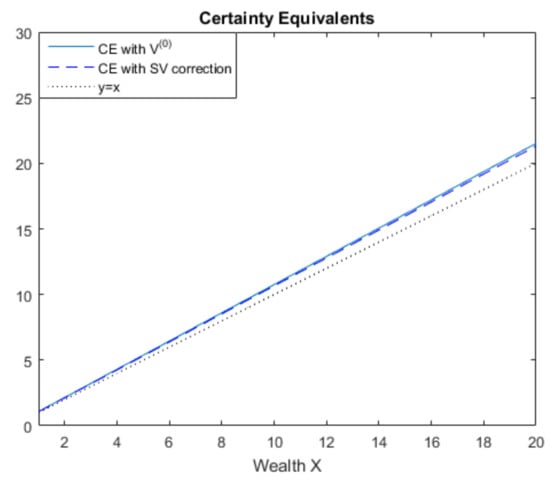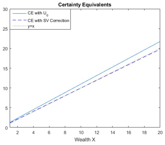 The approximate indirect utilities or can also be represented by their certainty equivalents and , which are shown in Figure 5 and Figure 6.