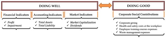 From the research done on key words “doing well”, “doing good” and CSR, it was found that several researchers were concerned about defining these concepts in published articles. Most have considered that “doing well” is associated with a profit-generating business [], i.e., with being profitable [,], while “doing good” with CSR. Kotler and Lee [] mentioned in their book the practical aspects of CSR and formulated six options for “doing good” and twenty-five best practices for “doing the most good for the company and the cause”.