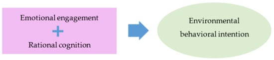 Kollmuss and Agyeman [] indicated that, in the models proposed in early studies, environmental education was employed as a means for individuals to acquire knowledge of a certain topic, thereby generating in them specific behavioral intentions and facilitating their engagement in in corresponding behaviors. Related research has indicated that knowledge is a necessary condition that affects individuals’ behavioral intention or behavior. Acquiring more environmental knowledge, understanding how to solve environmental issues, or acknowledging the benefits of engaging in environmental protection behavior enhances individuals’ intention of environmental protection [,].