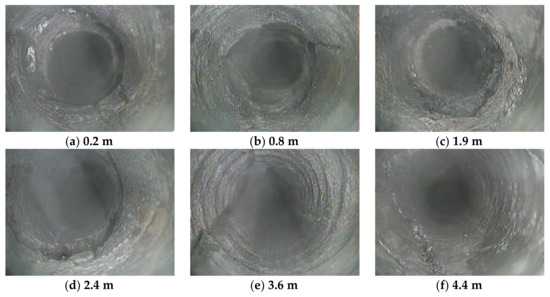 The rock mass strength values suggested that the surrounding rocks were typical soft rocks, generally of low and poor quality. Borehole optical televiewer imaging revealed that the fractures heavily developed in the roof. The annular fractures that developed in the borehole indicates that roof separation may have occurred in the shallow area, and the integrity of rock mass gradually increased from shallow to deep areas (see Figure 3).