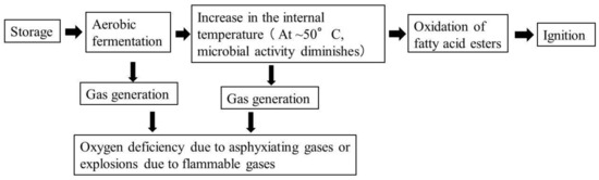 - Li, X.R.; Koseki, H.; Momota, M. Evaluation of danger from fermentation-induced spontaneous ignition of wood chips. J. Hazard. Mater. 2006, 135, 15–20. [Google Scholar] [CrossRef] [PubMed]
