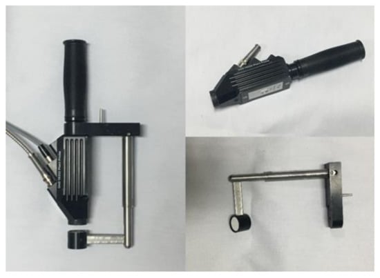 The reflectance spectra of leaves were recorded by an ASD FieldSpec 4 (Analytical Spectral Devices, Inc., Longmont, CO, USA) portable ground object spectrometer. A plant contact probe and leaf clip were used with the spectrometer optical fiber to obtain detailed measurements of the leaf surface (Figure 3). The leaf clip had a double-sided rotatable background plate, a black reference board for measuring leaf reflectivity, and a white reference board for calibration. The spectral parameters are given in Table 1. The leaf was measured directly with an embedded light source (i.e., a built-in halogen lamp). The spectrometer was calibrated before and after measurement with the white reference board, which had a reflectance of 99% [47,48]. The spectral reflectance was obtained by calibrating with the reference board. The spectral reflectance of multiple samples of each leaf type were measured, and 10 curves were drawn with time intervals of 0.1 s. The mean value was used as the spectral reflectance of the sample. For each leaf type, 180 samples were recorded. The spectrometer was calibrated with the white reference board every 15 min.