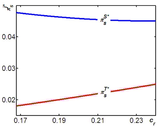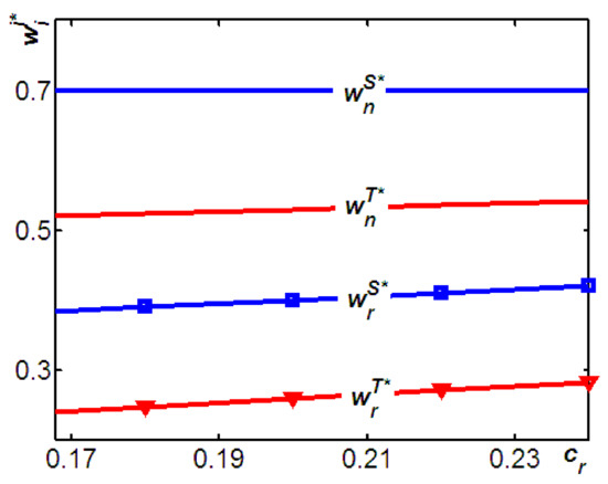 In Model T, remanufactured products are provided by the TPR, while new products are offered by the supplier. Said differently, in Model T, all the TPR’s profits are obtained from remanufactured products only. As a result, in Model T, the TPR would be likely to choose a relative lower wholesale price () for remanufactured products to ensure increased output for remanufactured products sales. Although such a lower wholesale price () for remanufactured products would be highly detrimental to the sales and the unit wholesale price of the new products, the TPR would care nothing about the potential for cannibalization of new products, because all its profits are obtained from remanufactured products only. However, in Model S, both products are offered by the supplier. Put differently, in Model S, the supplier’s revenue comes from both products; as a result, unlike the TPR in Model T, the supplier cares more about the potential for cannibalization of new products and is less likely to set higher wholesale prices for remanufactured products, a strategy that reduces the demand for the units of remanufactured product and mitigates the adverse effects of the potential for cannibalization of new products by remanufactured products.