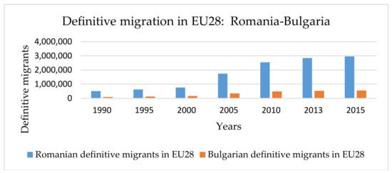 Definitive migrants in EU28: Romania and Bulgaria in 1990–2015. Source: [85].