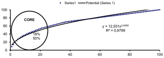 Lorenz curve. Bradford’s core of the most productive magazines. Source: Own elaboration.