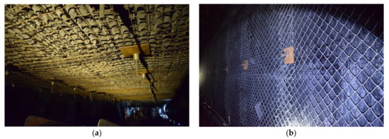 Photos of the roadway during excavation: (a) roof; (b) sidewall. Note: Photos were taken at S + 68 m where the distance from the excavation face was 100 m.