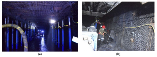 Photos of the roadway during mining: (a) roof; (b) sidewall. Note: Photos were taken at locations close to LCF 21204.