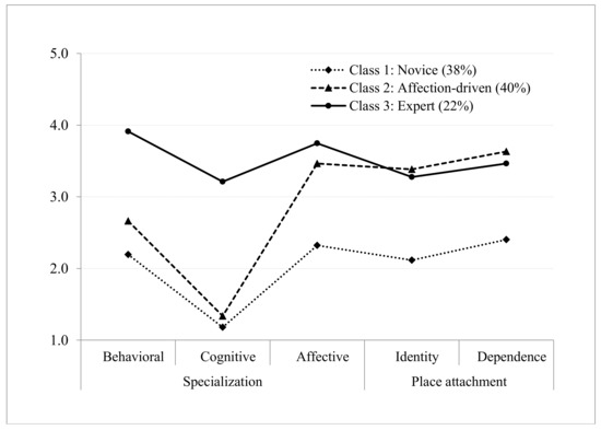 Song, H.; Graefe, A.R.; Kim, K.; Park, C. Identification and Prediction of Latent Classes of Hikers Based on Specialization and Place Attachment. Sustainability 2018, 10, 1163. https://doi.org/10.3390/su10041163