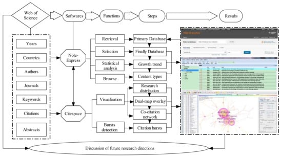 NoteExpress is one of the most frequently used professional literature retrieving and management tools []. The core function of NoteExpress contains knowledge acquisition, management, application, and digging, covering all segments of knowledge management []. The bibliography downloaded from websites could be preserved through NoteExpress, thereby managed and cited easily. It can also be used to generate concise analysis of the researching trend and structure on a particular field. NoteExpress has been applied in many studies for literature mining [,,]. This paper organized document storage and conducted a statistical analysis of Sponge City literature using NoteExpress.