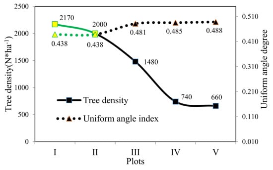 - Hui, G. Studies on the application of stand spatial structure parameters based on the relationship of neighborhood trees. J. Beijing For. Univ. 2013, 35, 1–8. [Google Scholar]