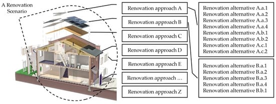 There is a broad range of renovation approaches that needs to be considered when renovating existing buildings. Kamari et al. [22] based on analysis of a real case study and available literature [23,24,25,26] identified a total of 139 renovation alternatives and grouped them into 26 approaches (see Table 2).