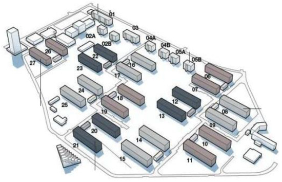 The selected case study is the renovation of a dwelling apartment block located in Aarhus, Denmark. The apartment block is a part of a dwelling area (see Figure 5) consisting of 27 identical apartment blocks built in 1967–1970. The blocks and common areas went through a renovation in the period of February 2014 to September 2017. The renovation included a refurbishment of all apartment blocks, new terraced houses, and common areas. The blocks were renovated in different styles, so they became a unit of two similar blocks. The façade types are, respectively, concrete/wood combination, and natural slate and zinc/aluminium/wood combination. The budget for the renovation of the blocks was estimated at 880 Mio. DKK.