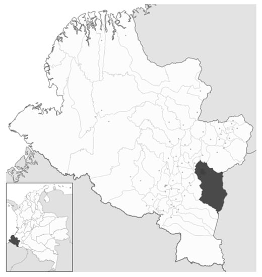 In Colombia, 60% of the population lives in 62 municipalities with more than 100,000 inhabitants. The average of inhabitants in those 62 towns is 470,041.11, approximately the number of inhabitants in Pasto: 440,040 (2015) [46]. This city presents an urban population index (UP) of 0.2, which means it is clearly urban. The UP is the quotient of the number of inhabitants between rural and urban areas in a given municipality [47]. The area of this administrative division is 1128.4 km2 and the urban territory covers 26.4 km2. It is officially called San Juan de Pasto, located in Southwest Colombia, and the capital of the Department of Nariño. Its precise location is 01°12′ north latitude and 77°16′ west longitude in the middle of the Andes mountain range, in the mountain massif named Nudo de los Pastos, in Atriz Valley, next to the Galeras volcano and close to the equator. Its urban area is divided into 12 communes [46]. Figure 1 presents the location of this department in the Colombian territory.