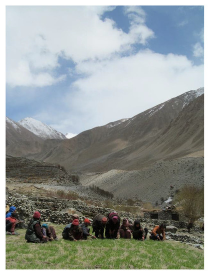 Physical geographic location also contributes to varying perceptions of climate change. In Leh’s Ibex Colony and Skara wards for example, farmers are predisposed to experience water shortages given their geographic location at the bottom of the irrigation network. Due to the hierarchal configuration of gravity-fed watering systems used across Ladakh, households situated at the bottom of the watershed, such as the Ibex Colony and Skara wards, are unfavorably situated to receive sufficient water supply relative to populations located at the head of the watershed. Whereas in the past, there was enough spring runoff water from surrounding tributaries to offset the gravity-fed watering system, nowadays increasing pressure on the irrigation systems, combined with more upstream water demand and an overall decrease in glacial runoff, generates a high degree of uncertainty for downstream water users. As Akhtar describes, “Farmers in lower wards often face water scarcity that was in the past, compensated by additional spring water dispersed around the nearby area. However, in recent years, spring water got less and the lack of water often means that the farmers in Skara (and other downstream wards) can only produce their vegetables for the market later than other farmers in Leh town” [71] (p. 75). The earlier the vegetables come to market, the better the prices are for the farmers. The geographic location of the Ibex Colony and Skara wards therefore economically disadvantages community farmers in comparison to upstream farmers who often receive adequate water supply and at more opportune times. Community members adversely affected by the lack of water are more likely to contextualize this outcome as an impact from climate change and thus perceive climate change impacts more frequently compared to other farmers with sufficiently irrigated fields.