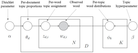 - Blei, D.M. Probabilistic topic models. Commun. ACM 2012, 55, 77–84. [Google Scholar] [CrossRef]