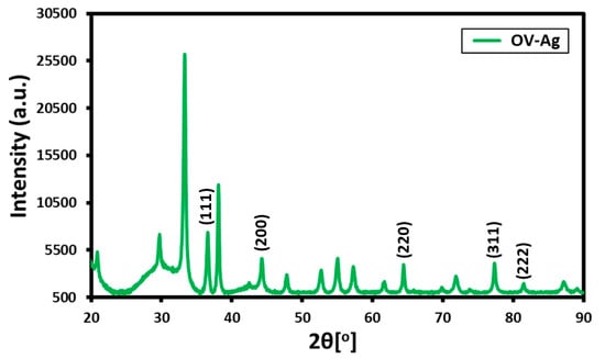 XRD diffractogram of OV-Ag nanoparticles (NPs).