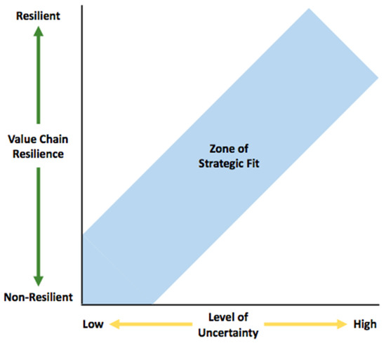 Strategic fit between value chain resilience and uncertainty. Adapted from Chopra and Meindl (2016, pp. 27–28) [34].