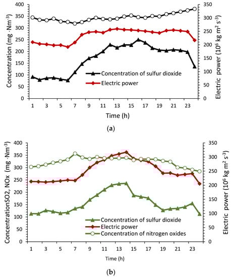 It was also observed that the content of SO2, NOx, or fly ash increases when the power plant operates at peak capacity, i.e., during winter and peak hours. No such relationship was found for oxygen.