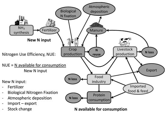 Erisman, J.W.; Leach, A.; Bleeker, A.; Atwell, B.; Cattaneo, L.; Galloway, J. An Integrated Approach to a Nitrogen Use Efficiency (NUE) Indicator for the Food Production–Consumption Chain. Sustainability 2018, 10, 925. https://doi.org/10.3390/su10040925
