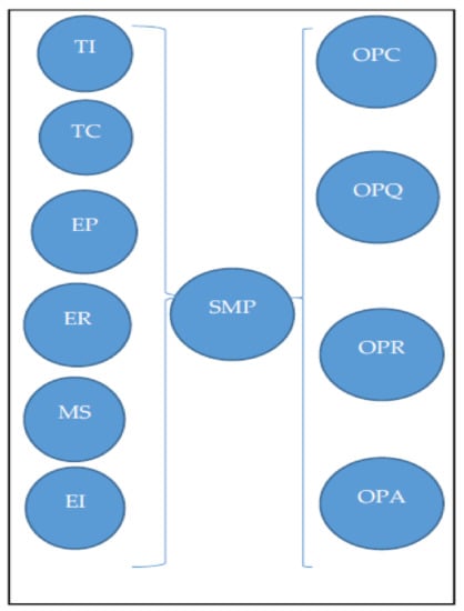 However, studies that have used the TOE framework in sustainability research are scarce. Current examples involve the green supply chain [18] and green IT initiatives [19]. Hence, identifying the key determinants of SMP using the TOE framework is an apt choice due to its generic nature and applicability across a wide variety of contexts. The framework is also appropriate as the theoretical foundation for diagnosing sustainable initiatives and practices [20,21].