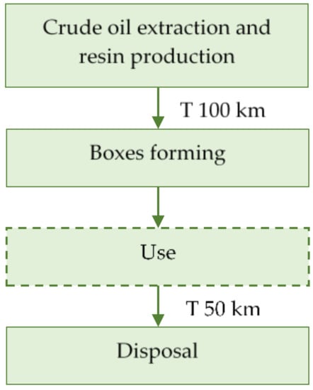 Life cycle stages of the studied polypropylene boxes.