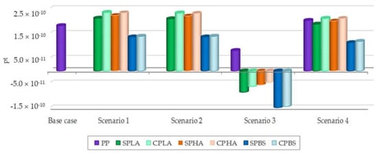 In this study, PBS shows the best performance in terms of environmental impacts for all EOL scenarios, but it does not show the best performance for the economic indicator. On the other hand, when considering the economic indicator, PP reveals lower costs than all kinds of bioplastics, but it does not show the best environmental performance. By applying the E/E approach, despite better environmental performance of PBS and lower costs of PP, PLA has the highest E/E values indicating better environmental and economic sustainability. As a matter of fact, there is no standard definition of E/E, and the environmental impact reduction as an environmental indicator and the total cost as an economic indicator that were used in this study were useful to differentiate which production and EOL was better in terms of both environment and economics.