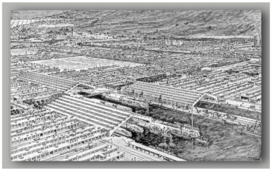 - Wiebenson, D. Utopian aspects of tony garnier’s cité industrielle. J. Soc. Arch. Hist. 1960, 19, 16–24. [Google Scholar] [CrossRef]