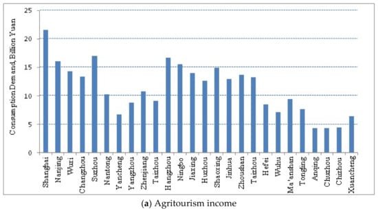 In this paper, the model of consumption field considers the agritourism consumption of urban residents as a radiation field emitted from the main urban area, and the spatial interaction of the urban area and the peri-urban spaces are connected through this field. In this way, the consumption field model can comprehensively consider spatial distance, the agritourism consumption expenditure of urban residents, and the agritourism attractions arising from the peri-urban spaces. However, the idea of distance decay only considers the decay of the agritourism consumption field in terms of distance. Indeed, the field strength of agritourism consumption for urban residents is delayed with spatial distance. However, as the spatial distance increases, the total consumption in a place is likely to increase, which cannot be explained by the distance decay model. However, the consumption field model can well explain this phenomenon. The greater attractiveness of a place induces a greater driving force for the agritourism flow. In other words, the influence factor of agritourism attractions arising from the peri-urban spaces cannot be considered for the idea of distance decay. Therefore, the consumption field model can more fully reflect the essential characteristics of agritourism than the idea of distance decay.