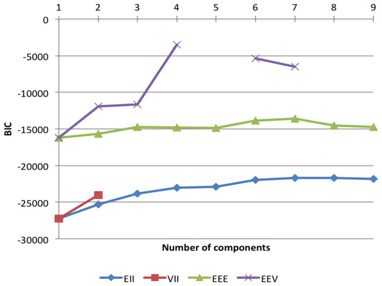 - Fraley, C.; Raftery, A.E.; Scrucca, L.; Murphy, T.B.; Fop, M. Mclust: Gaussian Mixture Modelling for Model-Based Clustering, Classification and Density Estimation. Available online: https://cran.r-project.org/web/packages/mclust/mclust.pdf (accessed on 30 October 2017).