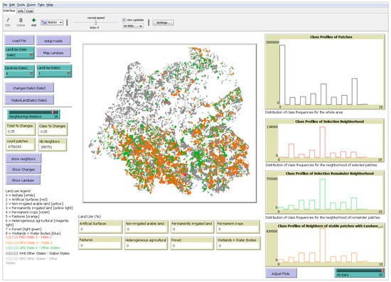 LAND―a method used to measure sprawl between existing land use classes and new ones of the same category―was written in the Logo programming language and developed in NetLogo (Figure 2). NetLogo is one of the most widely used software tools to model the environment [36].