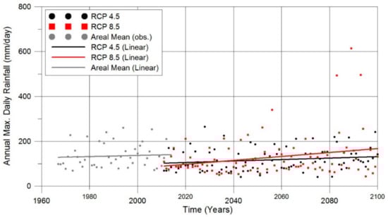 Annual maximum rainfall data (observed and future).