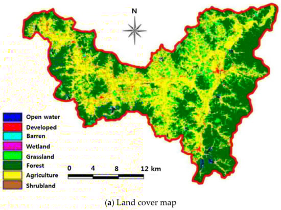 The parameters in SWAT model were calibrated by SWAT-CUP and also the results were validated. The calibration periods were 1 January 2013–31 December 2013, and also the validation periods were 1 January 1997–31 December 1999. Especially, for the validation, three-year observed daily runoff data was used to check the adequacy of the calibrated parameters in the SWAT model.