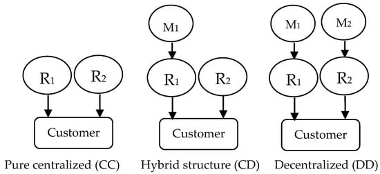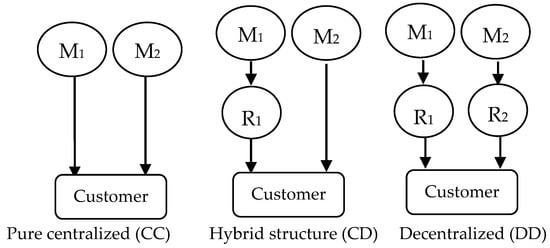 The model involves three types of supply chain, as shown in Table 1. Since (CD) and (DC) are the essentially same type of structure, that is, one chain is integrated and the other one chooses decentralization, we only use (CD) to denote the mixed type for ease of the comparison and differentiation with the other two structures.
