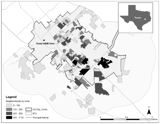 Study Area and Its Neighborhoods: College Station, Texas.