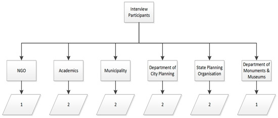 Accordingly, 10 semistructured interviews are conducted with the professionals under six different divisions who have a role in heritage-led urban regeneration projects in Northern Cyprus. The allocation of interviewees according to their divisions is given in Figure 2. Moreover, every participant had at least 10 years of experience in urban regeneration projects, with a diversity in gender of four males and six females. The interview questions are prepared in order to find out challenges and drivers in heritage-led urban regeneration, sources of sustainable planning problems, and lack of public participation; and any measures for conflict mitigation, existence of a lack of knowledge, potential stakeholders, and causes of perception difference among stakeholders. NVIVO software is used with the purpose of analysing qualitative data by content analysis. After conducting seven interviews, it was found out that there was no more contribution to the results and we stopped at the tenth interview.