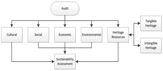 Moreover, the conservation of heritage significance is due to either historical, scientific, social, or aesthetic value. Based upon this approach, tangible and intangible heritage, which encourages the realization of some values in people, should be preserved. This selection shifts from being valued upon the subject’s intrinsic quality into our ability to observe its historic, scientific, social, and aesthetic values. In order for such a shift to occur, it is necessary for society to perceive the values upon which the cultural identity may be constructed [37]. Therefore, tangible and intangible heritage need to be considered separately under the heritage dimension during sustainability assessment.