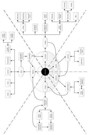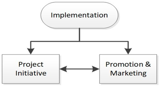 The results of content analysis showed that 20% of the respondents underlined that the implementation phase of a project is a source of sustainable planning problems, and 30% considered it as a challenge. Therefore, project initiative and promotion and marketing are acknowledged as the elements of the implementation phase. The conceptualised phase is formed by the findings given in Table 6 and introduced in Figure 6.