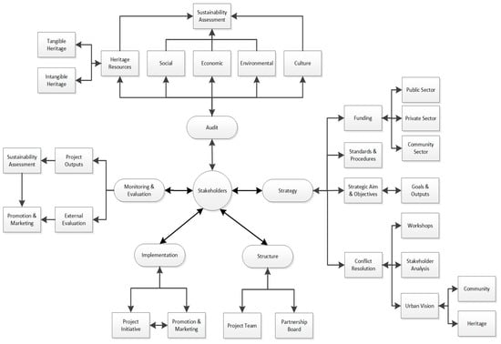 Policy making has focused mainly on collective problem-resolving methods, with factions such as governmental and nongovernmental and private and scientific branches of society. Such actors are classified as stably independent, while at the same time, autonomously operational and negotiating factions [48]. The cooperative processes of urban planning and management are vital in obtaining forms of sector- and place-specific knowledge, which are not valued in top-down, expert-based models of urban governance and strategy [49]. The core benefit of incorporating all factions of society during the policy and planning phases is the amelioration of the democratic decision-making ability and the promotion of improved implementation effectiveness [43]. Consequently, sustainable heritage-led urban regeneration projects are closely related to effective planning and collaboration between all stakeholders in the built environment.