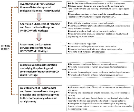 Inspired by the ecological wisdom underlying the planning and construction of Hongcun, this paper proposes and verifies the Human-Natural Intergraded Ecological Planning (HNIEP) conceptual model for ecological planning and ecosystem services in urban and rural areas. Learning from the lessons that Hongcun has given us, and the new knowledge the HNIEP model brings to studies on ecosystem wisdom, recommended principles and guidelines applying to the contemporary urban and rural planning should include the following:
